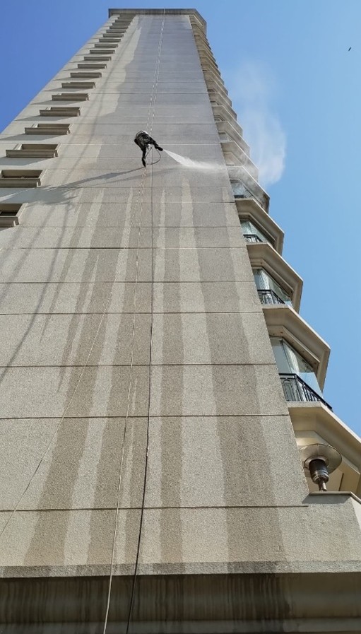 As fachadas em alvenaria recebem limpeza técnica com hidrojateamento e aplicação de soluções específicas, conforme as condições do material. O processo remove incrustações, fungos, manchas e poluição, garantindo conservação, segurança e valorização do patrimônio.