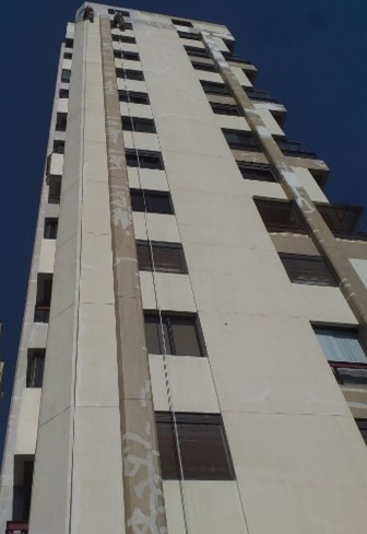 A restauração da fachada consiste em preparar o substrato para posteriormente receber a pintura, nessa etapa são tratadas patologias como trincas e fissuras superficiais e também reboco desagregado ou com falta de aderência, em seguida o acabamento existente na fachada (textura, grafiato, massa corrida, reboco) deve ser recomposto.
