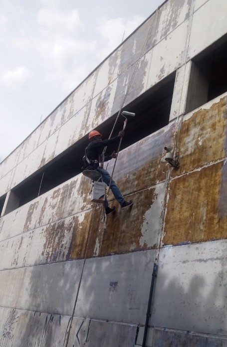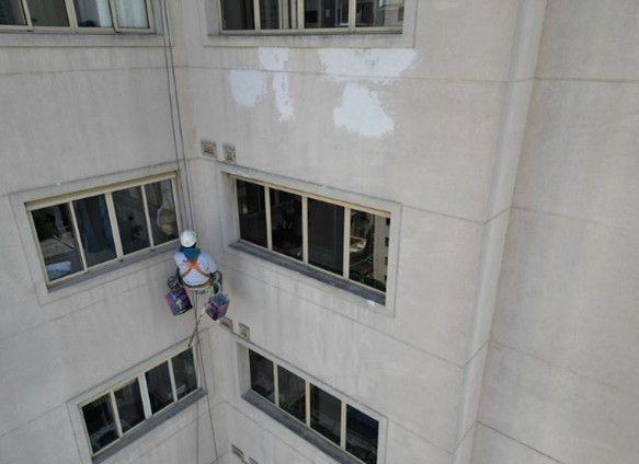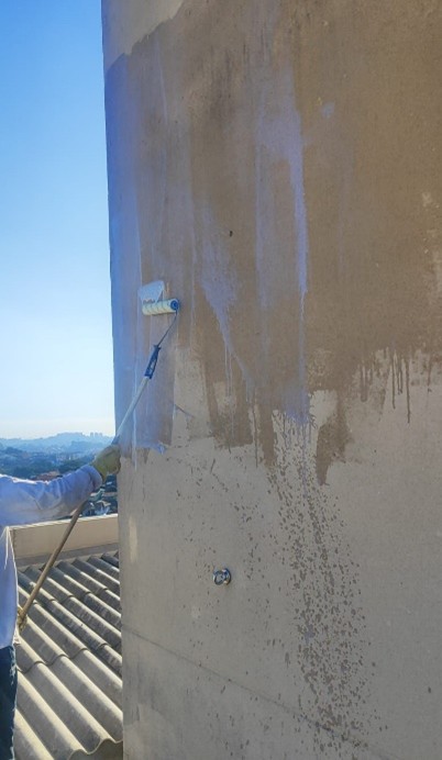 Após essa etapa a fachada do prédio receberá, dependendo do projeto, camada de fundo preparador (aglutinador de partículas), fundo flexível impermeabilizante ou selador acrílico para possibilitar a aplicação da tinta.